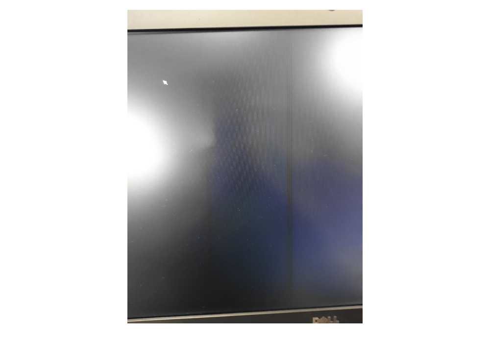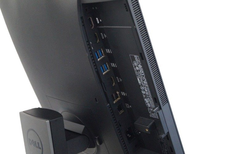 Komputer poleasingowy Dell All-In-One 7450, wyposażony w czterordzeniowy procesor Intel Core i5. Sprzedawany bez myszy oraz klawiatury. Posiada widoczny pasek na matrycy - głównie na ciemnych, czarnych tłach.