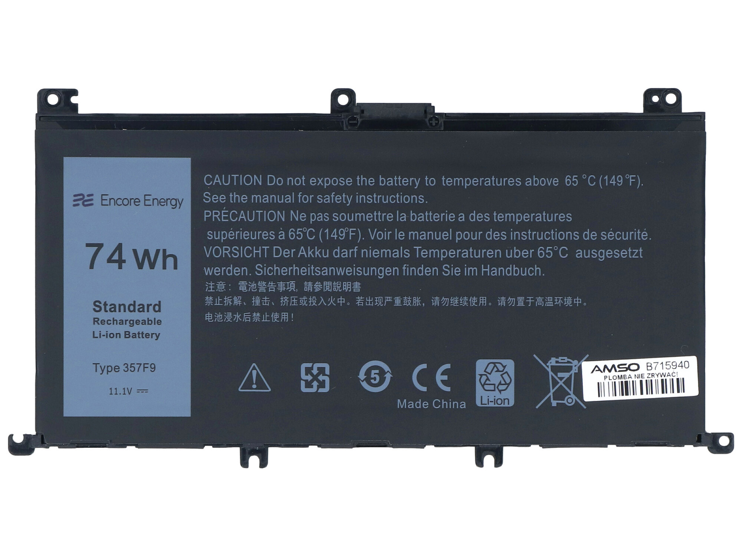 Nowa bateria Encore Energy do Dell Inspiron 15 5576 5577 7557 7559 7567 7566 74Wh 11.1V 6600mAh 357F9
