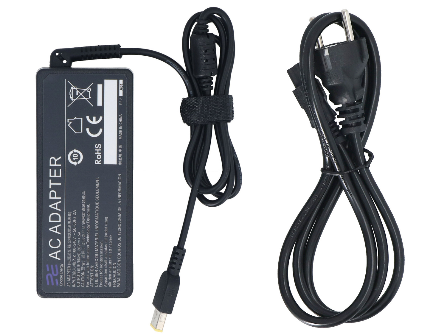 Zasilacz Encore Energy do laptopów Lenovo, wtyk prostokątny SlimTip (square yellow). Wysokiej jakości zamiennik. W zestawie kabel zasilający. Zdjęcia poglądowe.
