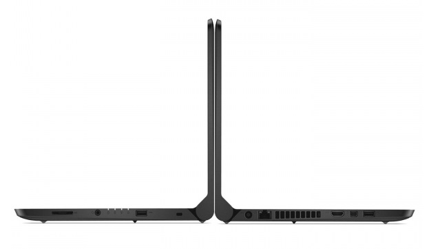 Wyposażony w DisplayPort, HDMI, 2 x USB 3.0, czytnik kart SD, gniazdo audio i blokadę Kensingtona.