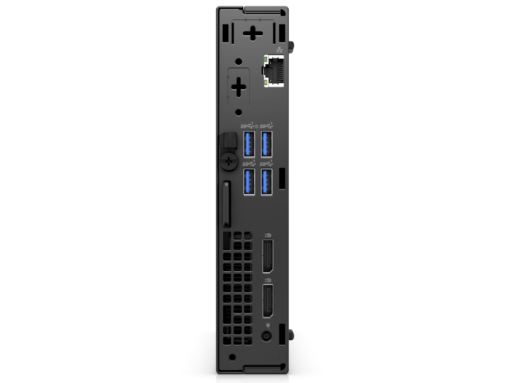 Dell Optiplex 5000 Micro oferuje szeroki wybór portów, w tym USB 3.2, USB C i DisplayPort, umożliwiających szybkie podłączenie wszystkich potrzebnych urządzeń peryferyjnych oraz monitorów. Karta sieciowa LAN 10/100/1000 Mbps gwarantuje stabilne połączenie z internetem, niezależnie od warunków.