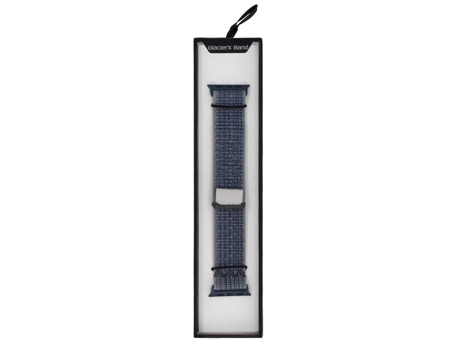 Nylonowy pasek GlacierX, dedykowany do Apple Watch 38/40/41mm. Zapinany rzep, umożliwia precyzyjne dopasowanie do obwodu nadgarstka. Produkt nowy, kolor stalowy niebieski Stormy Blue.
