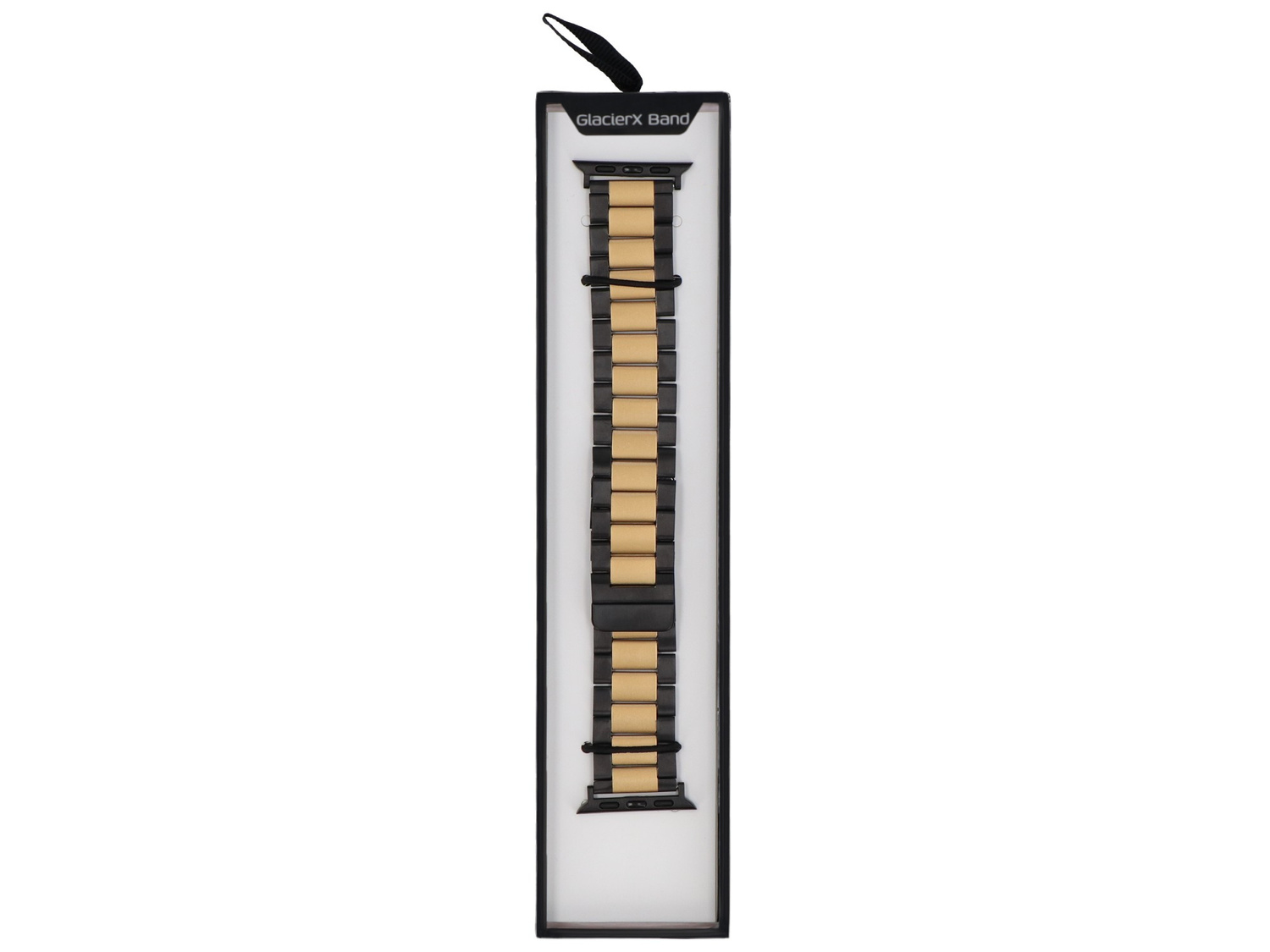 Bransoleta GlacierX dedykowana do Apple Watch 38/40/41mm. Zapinana magnetycznie, z precyzyjną, bezstopniową regulacją długości. Produkt nowy, kolor czarno-złoty.